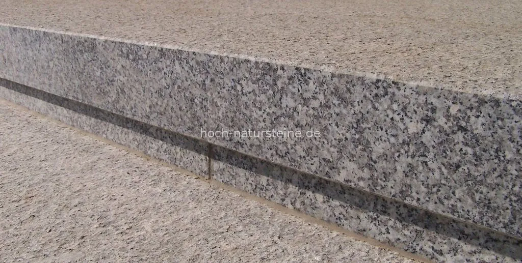 Die Wasser- und Schmutzaufnahme der von uns angebotenen Naturbaustoffe ist sehr gering. Je härter Granitstufen sind, desto geringer ist die Gefahr der Wasseraufnahme und somit der Frostschäden