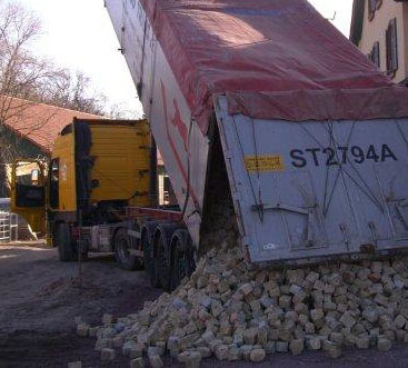68 Tonnen (ca. 306 m²) Pflastersteine Laban-2 für Workerszell