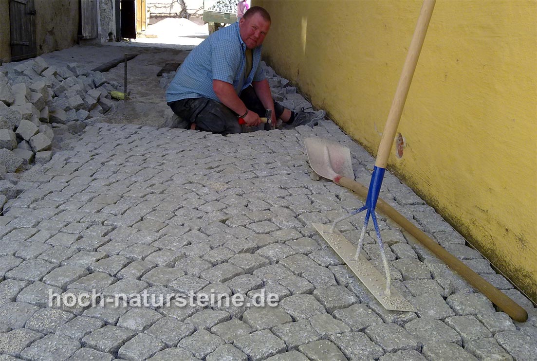 Pflasterbelag aus Granitpflaster oder Sandsteinpflaster herstellen