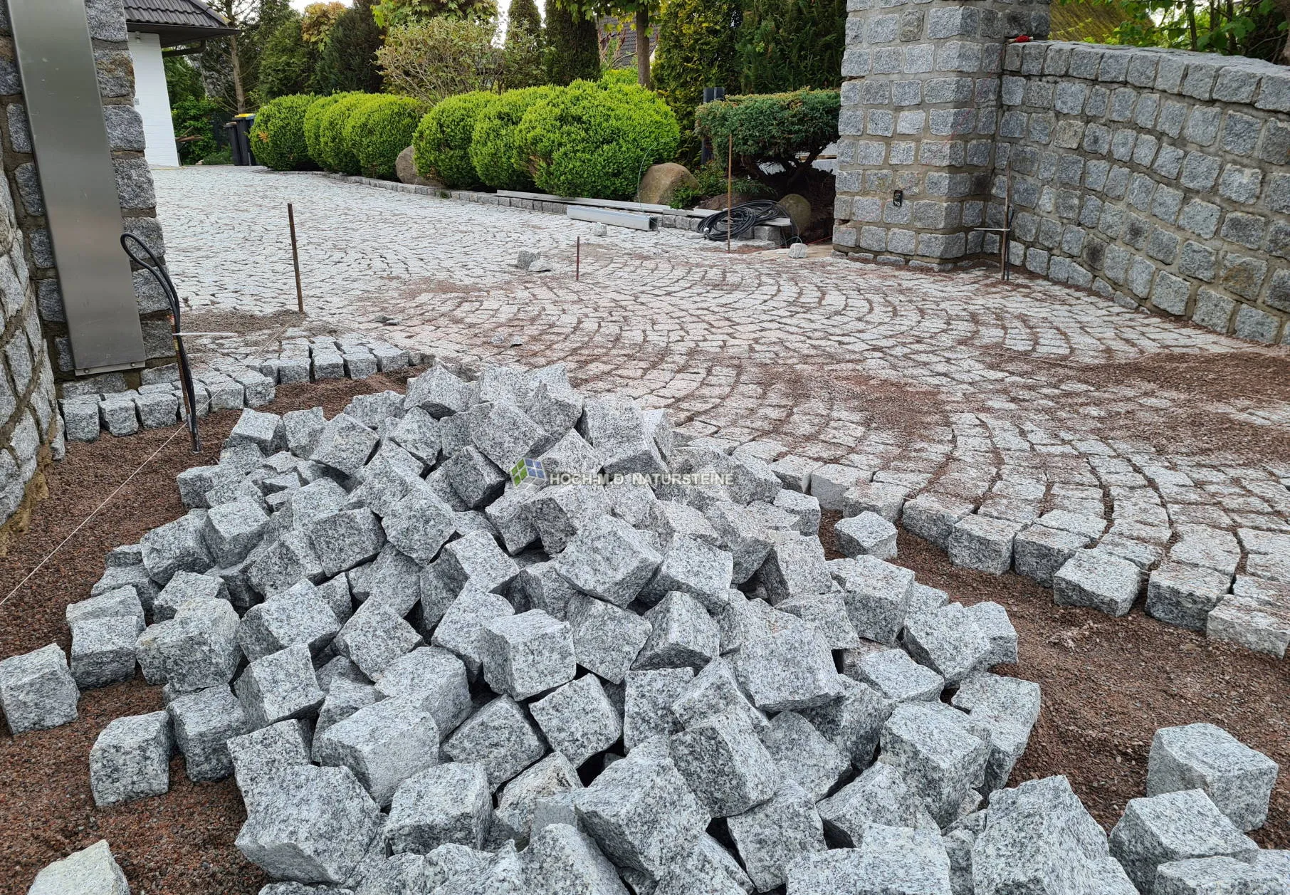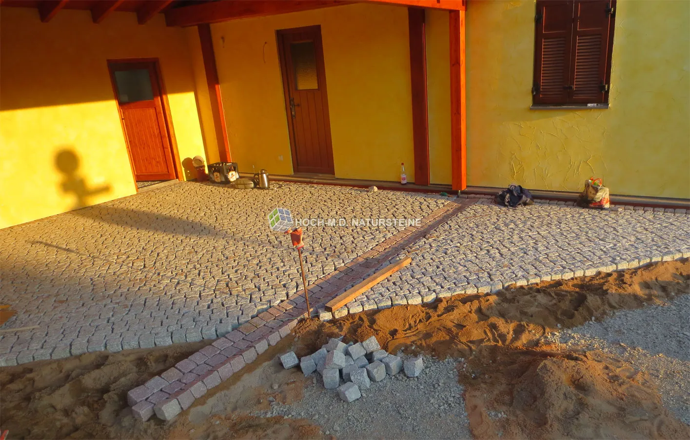 Die endgültige Abrechnung für die Pflasterarbeiten erfolgt nach dem Abschluss der tatsächlichen Arbeiten und m² Anzahl.