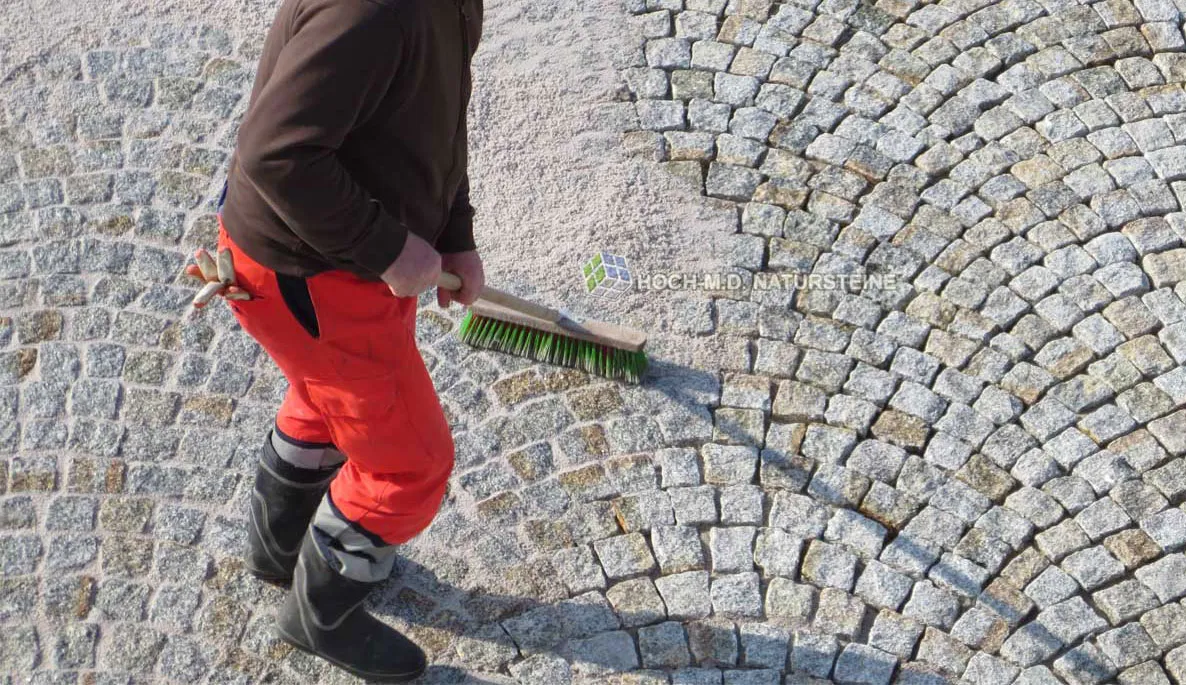 - Fläche einschlämmen bis zur vollständigen Fugenfüllung