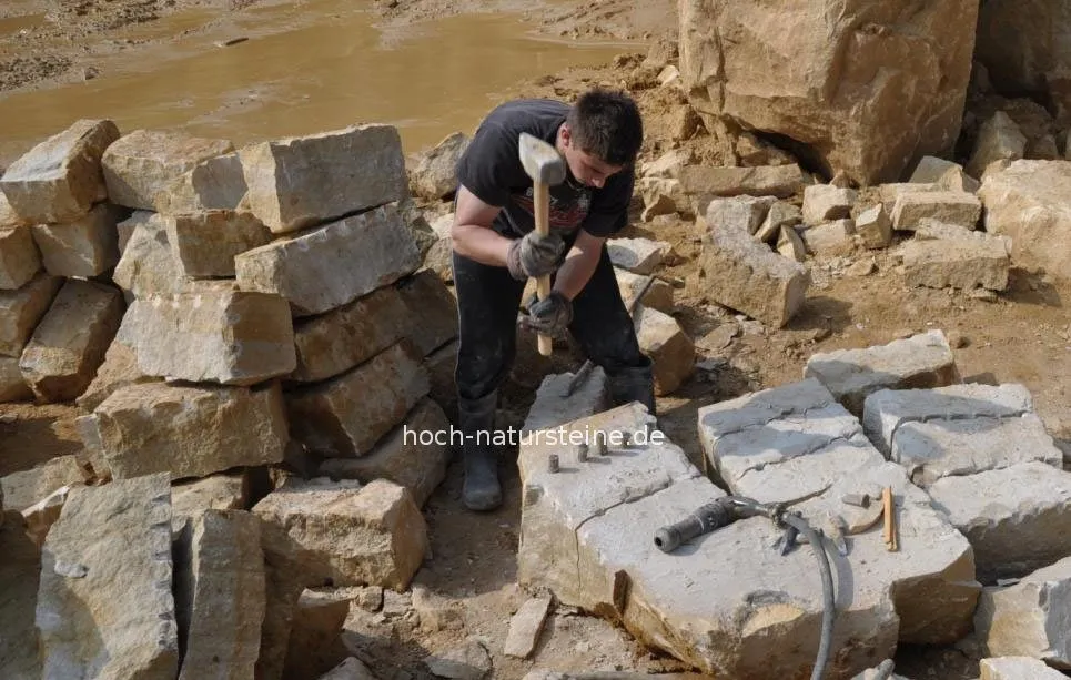 Sandsteinmauersteine werden per Maschinen- und Handschlag gespalten. Teilweise sind daher Werkzeugspuren sichtbar, welche jedoch unvermeidbar und handelsüblich sind. Diese Spuren sind ein Zeichen wertvoller Handarbeit!